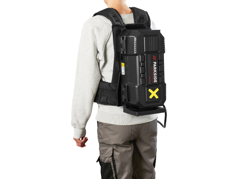 Le PARKSIDE PERFORMANCE® Sac à dos pour batteries portables PPRA 20 B1 20V / 40V accueille une ou plusieurs batteries compatibles dans un compartiment sécurisé. L’énergie est transmise à l’outil via un câble adaptateur, permettant d’alimenter l’appareil sans que la batterie soit fixée directement dessus. Ce système est particulièrement utile pour les outils de jardin tels que coupe-bordures, souffleurs ou taille-haies, en améliorant l’ergonomie et en réduisant la fatigue.