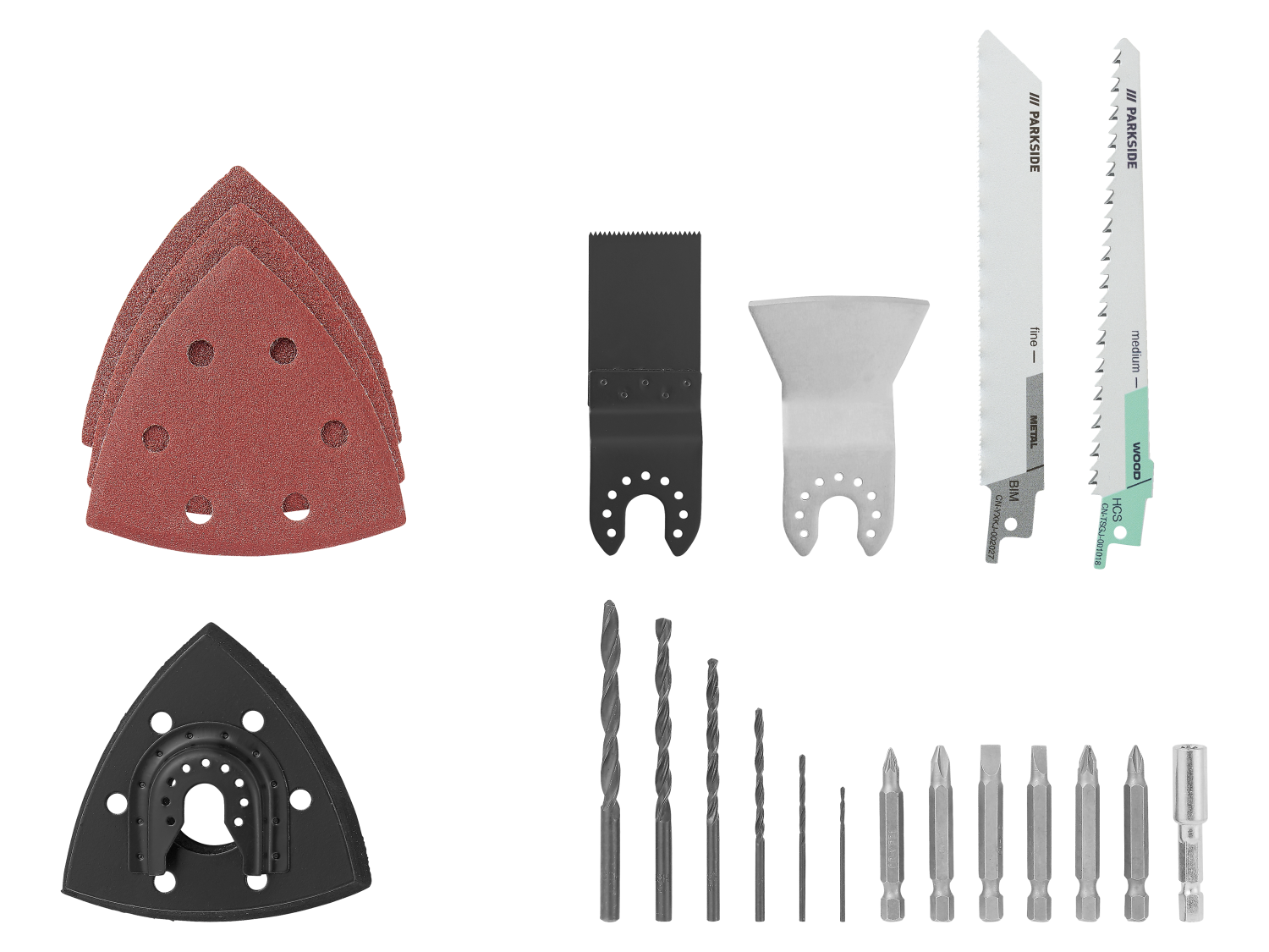 Ce set comprend déjà une batterie et un chargeur, mais l’appareil reste compatible avec d’autres batteries X 20 V TEAM recommandées comme PAP 20 B1, PAP 20 B3, Smart PAPS 204 A1, Smart PAPS 208 A1 et Smart PAPS 2012 A1. Pour l’usage, il est utile de prévoir des feuilles abrasives delta de rechange, des lames de scie adaptées au matériau travaillé et des forets ou embouts supplémentaires selon les travaux.